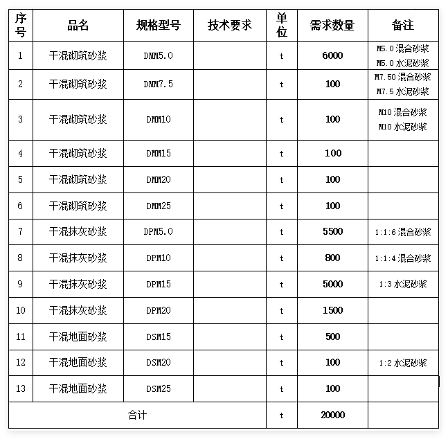 交貨期:要求所有砂漿供應(yīng)滿(mǎn)足生產(chǎn)需求。