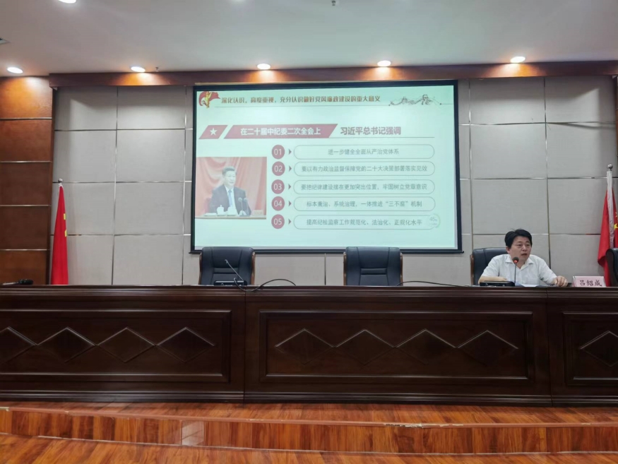 會議集中觀看了警示教育片《劍指頑疾 砸局破圈》、廉潔文化宣教片《深刻認識“兩個永遠在路上”的重大意義》和意識形態(tài)工作宣教片《堅持馬克思主義在意識形態(tài)領域指導地位的根本制度》;視頻學習黨紀法規(guī)《中華人民共和國公職人員政務處分法》《中國共產黨廉潔自律準則》和《中國共產黨紀律處分條例》;集中學習了習近平總書記關于全面從嚴治黨和加強紀檢監(jiān)察干部隊伍建設相關重要論述,傳達學習《城發(fā)建工集團2023年黨建工作要點》《城發(fā)建工集團2023年履行監(jiān)督責任工作要點》等文件精神,聽取了基層黨支部2023年黨建、全面從嚴治黨、意識形態(tài)工作總結及下半年工作計劃。