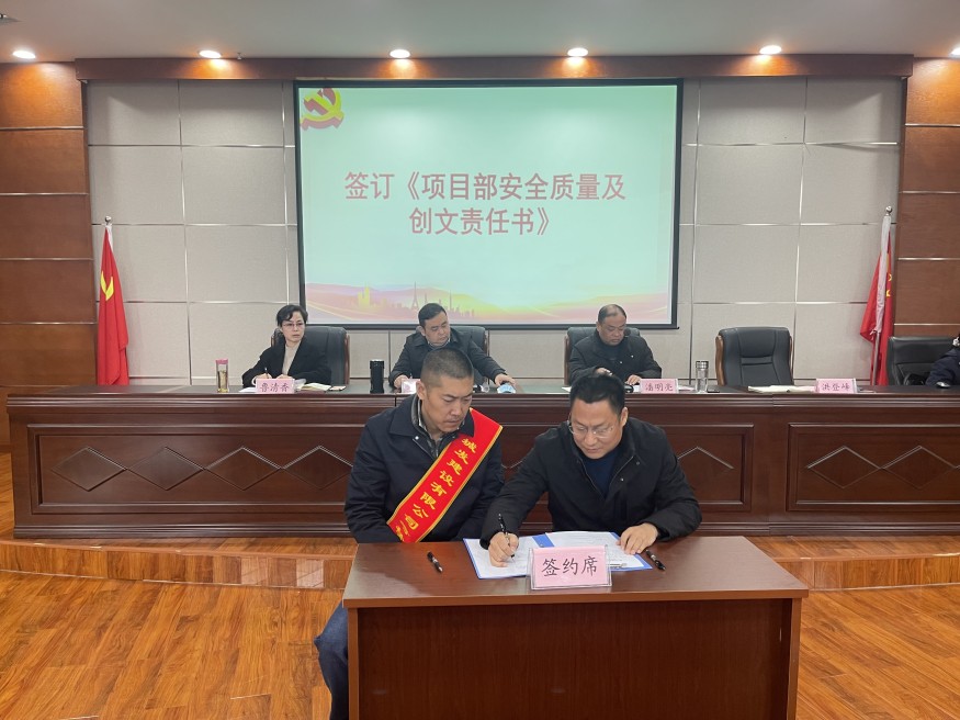 會上,公司分管領(lǐng)導(dǎo)和各項目部依次簽訂《項目部安全質(zhì)量及創(chuàng)文責(zé)任書》《項目廉潔建設(shè)目標(biāo)責(zé)任書》,全體參會人員現(xiàn)場簽訂《工程項目建設(shè)廉潔承諾書》。