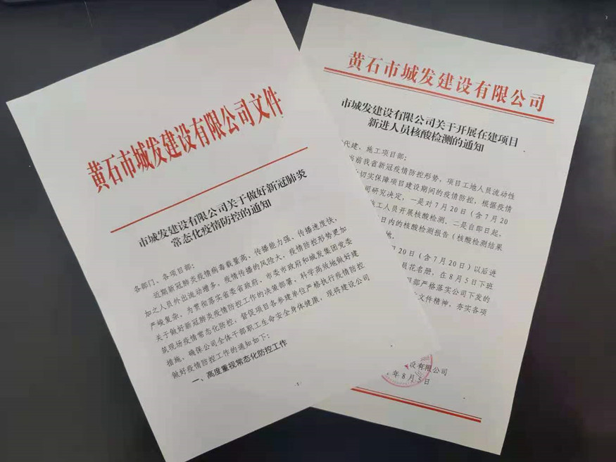 鑒于項目工地人員密集,流動性大的特點,8月5日,公司印發(fā)了《市城發(fā)建設(shè)有限公司關(guān)于開展在建項目新進人員核酸檢測的通知》,為切實擔(dān)負起防疫抗疫責(zé)任,有效降低人員流動引發(fā)的疫情傳播風(fēng)險,要求7月20日以來新進項目員工須持3日內(nèi)合格核酸報告進入項目工地。